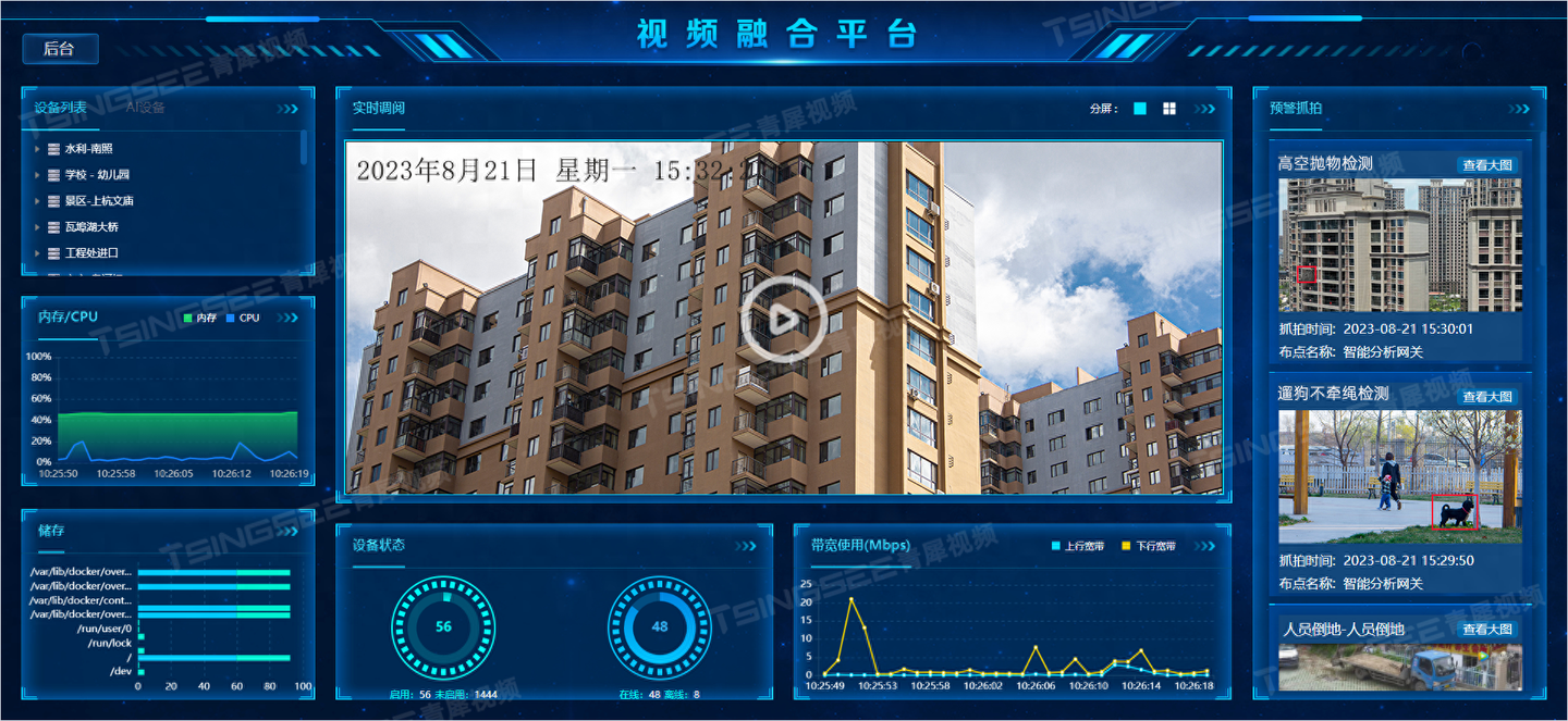 EasyGBS是基于国标GB28181协议的国标视频平台,视频能力也同样很丰富,能支持视频直播、录像、云存储、检索与回放、云台控制、告警上报、语音对讲等功能,支持分发RTSP、RTMP、HTTP-FLV、WS-FLV、HLS、WebRTC格式的视频流,实现多端覆盖。GB28181视频监控国标平台EasyGBS功能全面、综合性强、视频能力灵活,能够涵盖所有视频监控领域的需求,已经在大量的项目中落地应用,如:明厨亮灶、平安乡村、雪亮工程等。